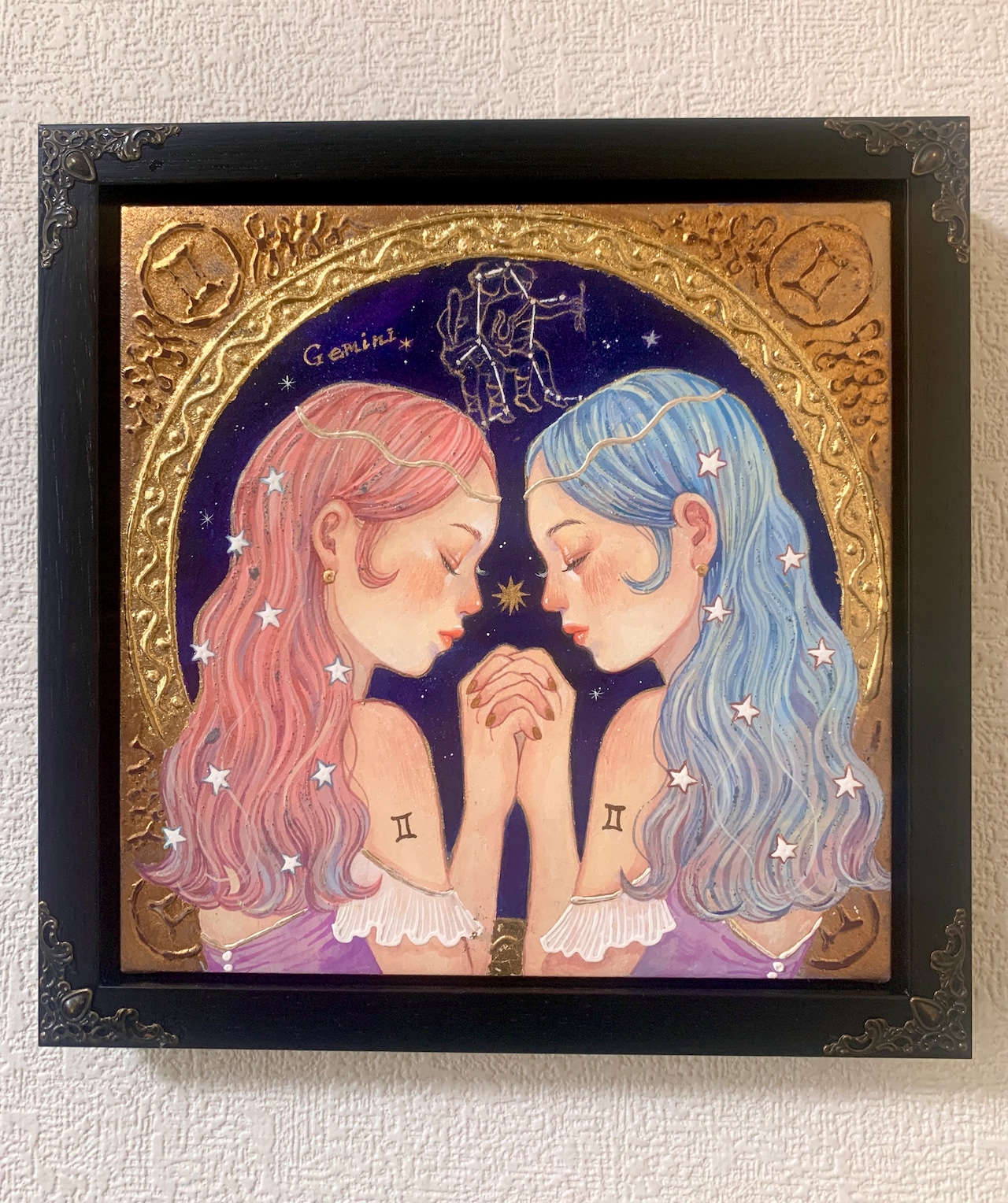 素材:麻紙に岩絵具、アクリル絵具、箔など