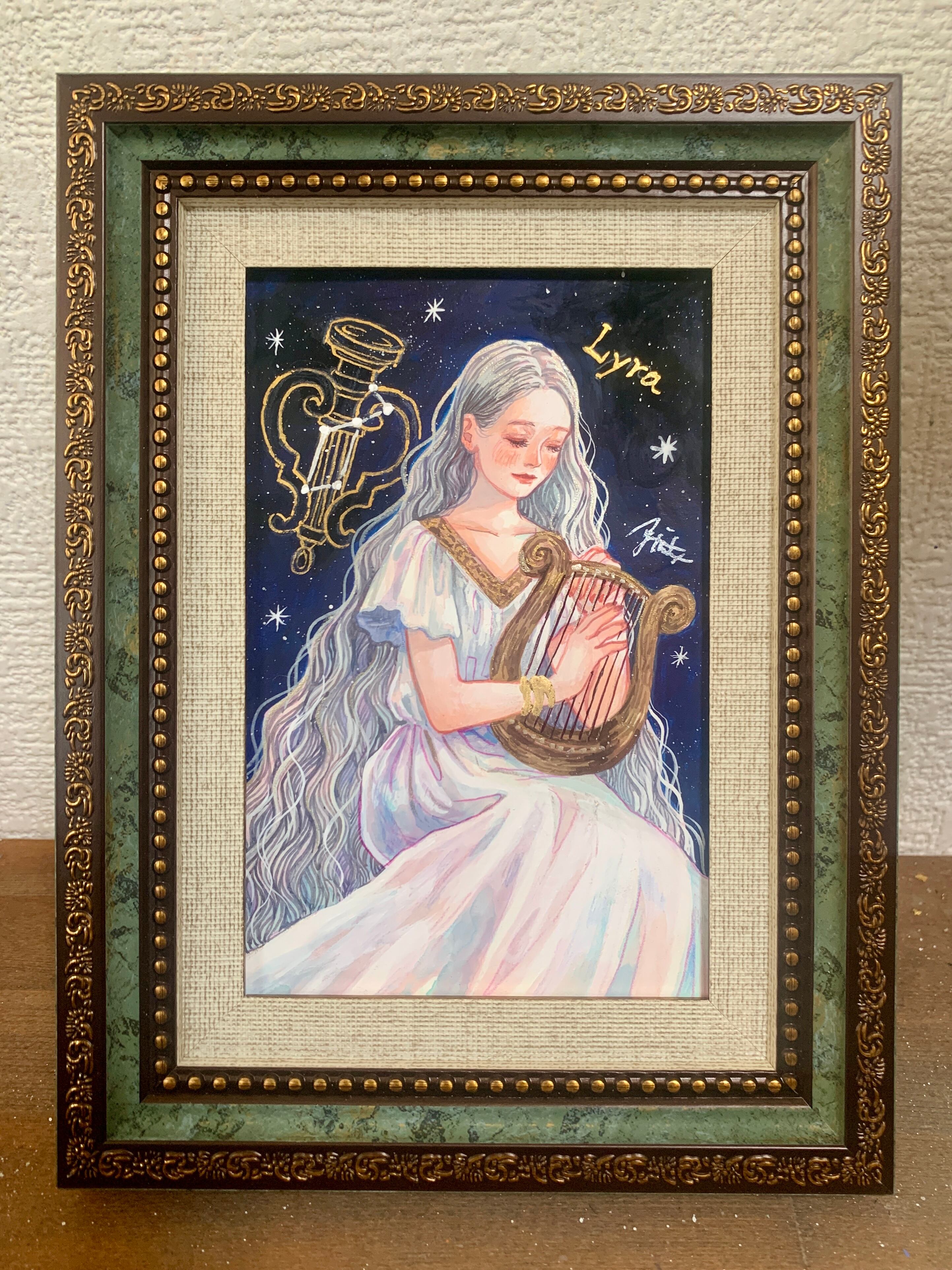 素材:水彩紙にアクリル絵具、顔彩、色鉛筆、箔など