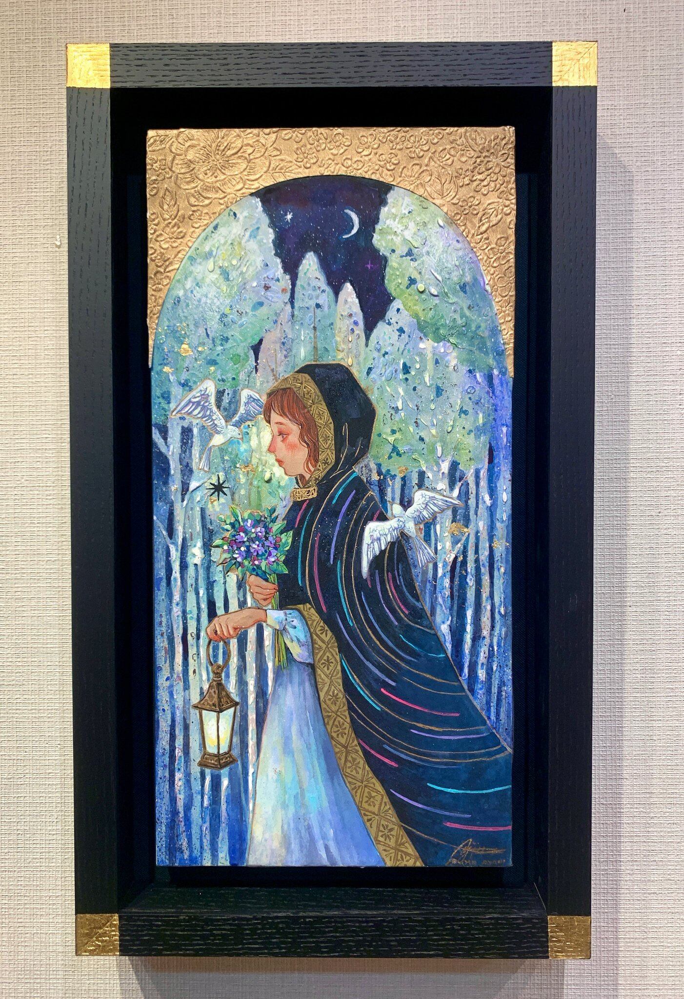 使用画材:麻紙に岩絵具、アクリル絵具、箔など