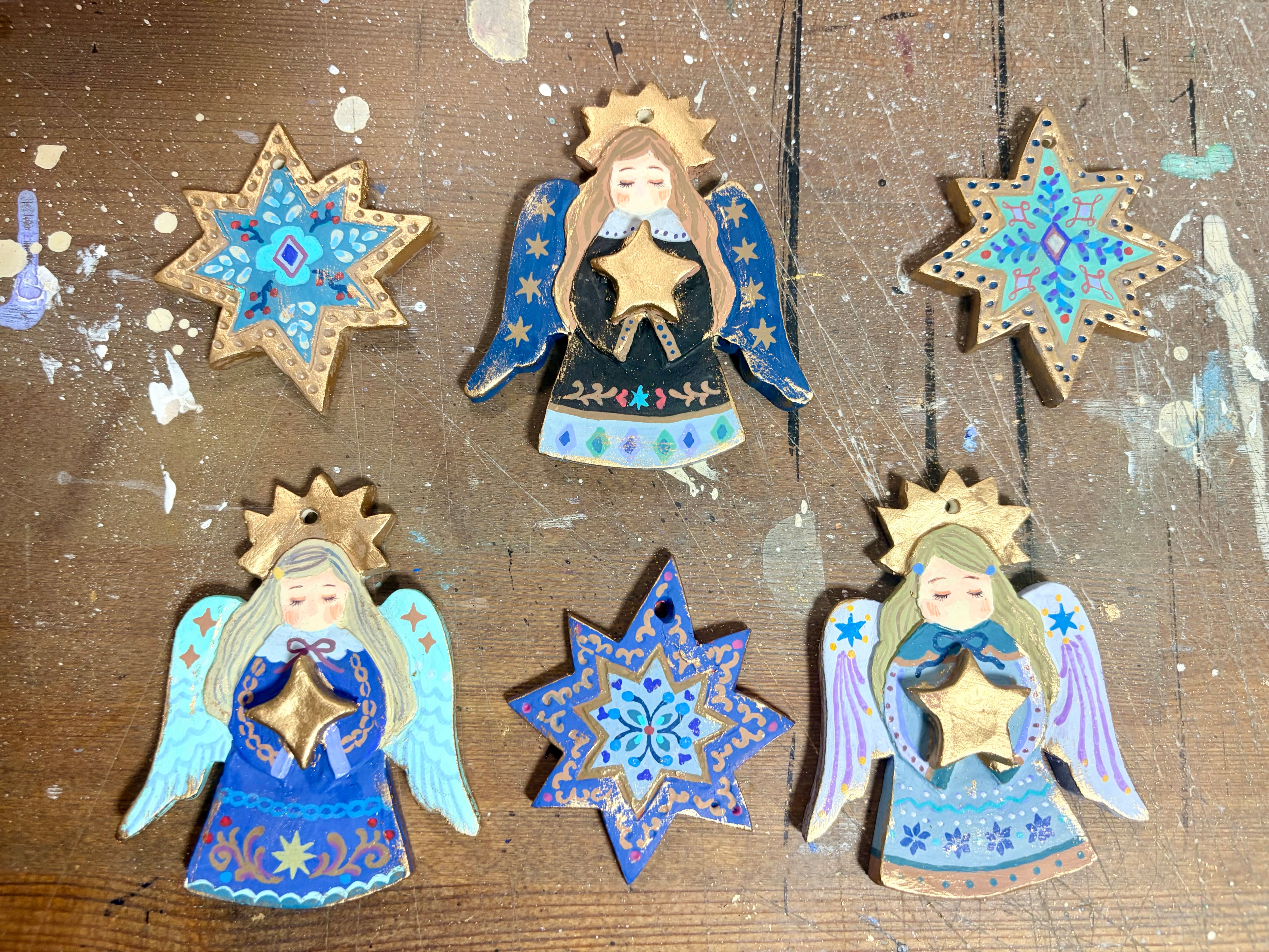 クリスマスオーナメントAセット《星を持つ天使、スター》